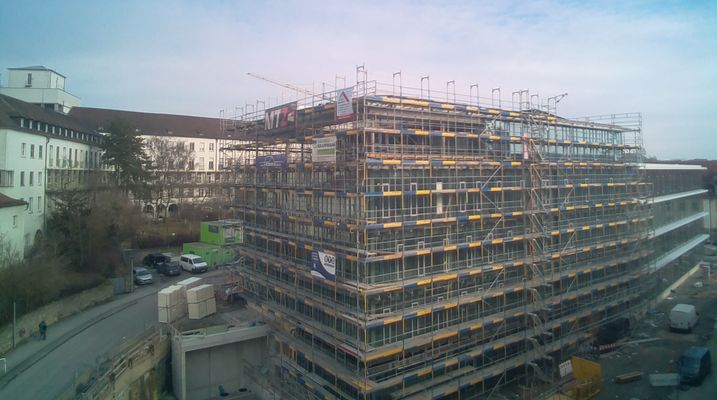 Mit der Fertigstellung des äußeren Baukörpers beginnt nun der Innenausbau. Dabei entsteht ein hochfunktionaler Laborbau mit maximaler Flexibilität und auf Basis eines nachhaltigen Konzepts. Die Gestaltung der Büro-, Seminar- und Sozialbereiche orientiert sich an den Prinzipien eines offenen, modernen Arbeitsplatzes und entspricht den Anforderungen von New Work.