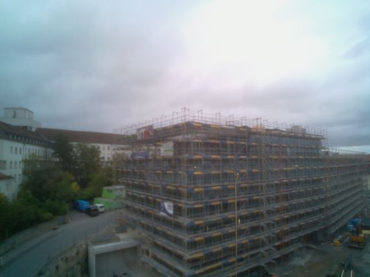 Momentan wird der Baukörper mit seinen fünf/vier Geschossen errichtet. Bei allen Maßnahmen wird darauf geachtet, dass möglichst wenig Erschütterungen im Boden entstehen, um Mensch und Tier zu schützen.