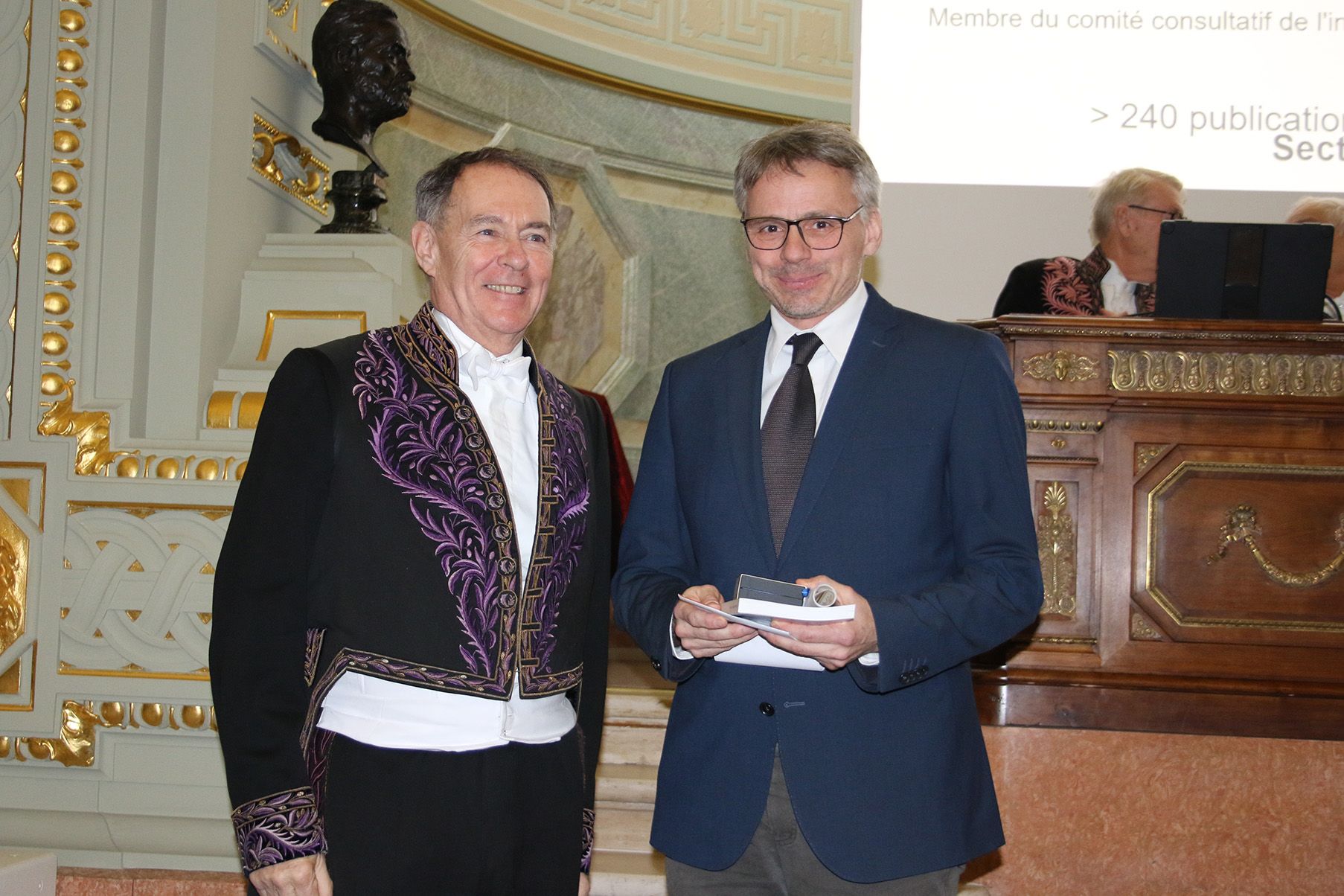 In a festive ceremony at its historic headquarters in Paris on January 7, 2025, the French Académie Nationale de Médecine officially admitted Fabian Leendertz as a new 'corresponding international member' (membre correspondant étranger). He was awarded the medal and diploma of the prestigious society for his services to research into zoonotic diseases. The academy, whose beginnings date back to 1731, brings together highly respected members from the fields of medicine, biology, pharmacy and veterinary medicine who take particular responsibility for public health through their work. Fabian Leendertz, who has also been an associate international member of the French Veterinary Academy (membre associé non nationaux d‘Académie Vétérinaire de France) since 2016, now combines two honorable memberships in renowned research societies in one person.