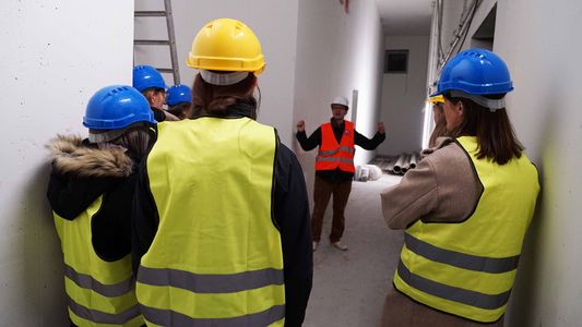 Led by Tobias Kerrinnes, Head of Scientific Infrastructure at the HIRI, the one-hour long tour took participants through the developing new building. They gained exciting insights into the architecture of the building and the planned work and research areas that will form the new home of the HIRI from 2027 onwards.