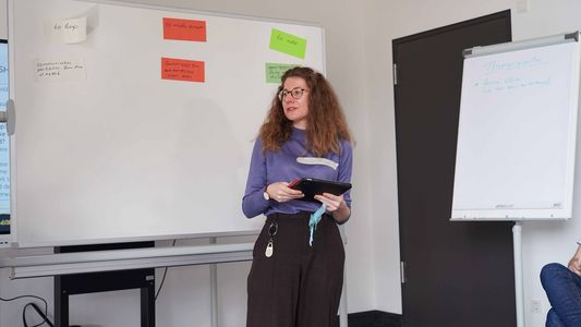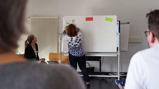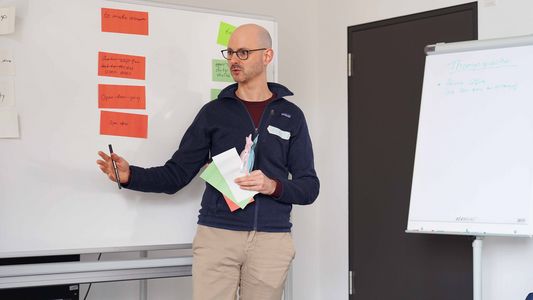 What should the future office spaces at the Helmholtz Institute Würzburg (HIRI) look like? To explore this question together, representatives from various HIRI departments and teams met for a workshop on March 10. They were invited to contribute their perspectives to the planning process.
