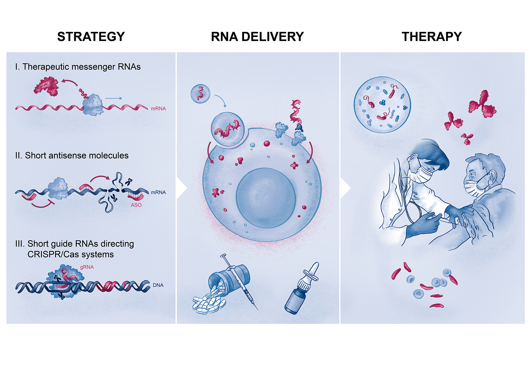 RNA-based therapeutics have emerged in recent years for several diseases. With the exceptionally rapid development of RNA vaccines to counteract the SARS-CoV-2 pandemic it has become increasingly clear that RNA is on the verge of becoming another major molecule class for the fields of diagnostics, prevention and treatment of diseases.